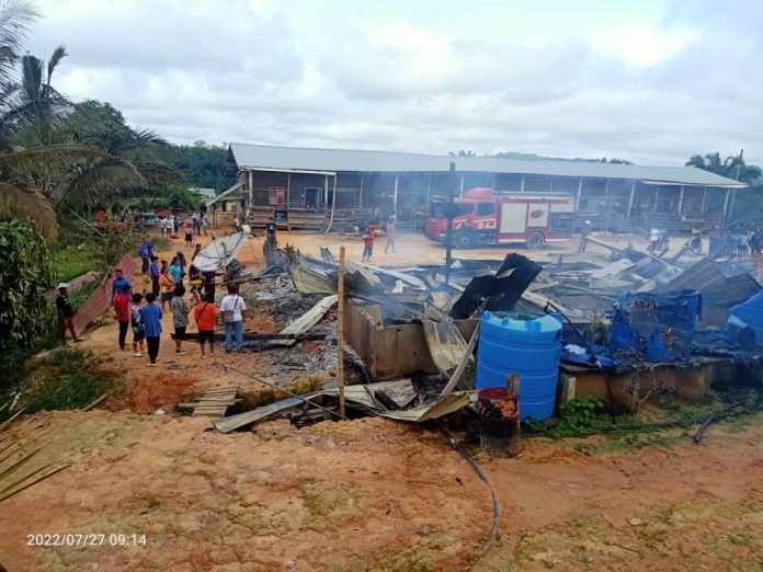 Jurucakap Pusat Gerakan Operasi (PGO) JBPM Sabah berkata kejadian jam 11.50 pagi itu membabitkan sembilan rumah jenis tidak kekal seluas 100X40 kaki. – Utusan Borneo