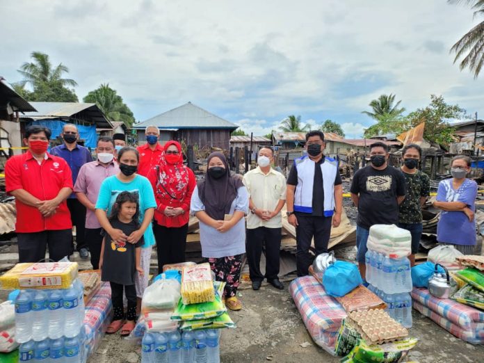 LAHAD DATU: Kebakaran di Kampung Pisang Lahad Datu yang memusnahkan dua buah rumah dan dua lagi 10 peratus terbakar mendapat perhatian UMNO Bahagian Lahad Datu.