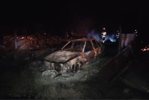 Turut musnah dalam kebakaran itu sebuah kereta jenis Proton Saga yang turut terbakar rentung.